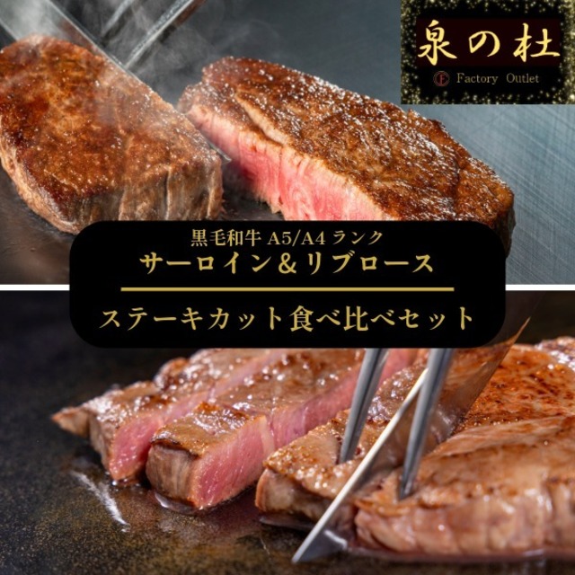黒毛和牛A5/A4等級 サーロイン&リブロース ステーキカット食べ比べセット
